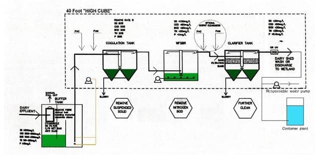 我公司針對新西蘭擠奶房沖洗水的特點,結(jié)合集裝箱幾何尺寸及業(yè)主的管理水平,特設(shè)計三池兩風機擠奶房沖洗污水自動處理回用設(shè)備,它與其它流行設(shè)備有很大的區(qū)別,不但工藝先進,而且機電設(shè)備極少,目前它是適用于擠奶房沖洗水的處理及回用的最新型專用設(shè)備。